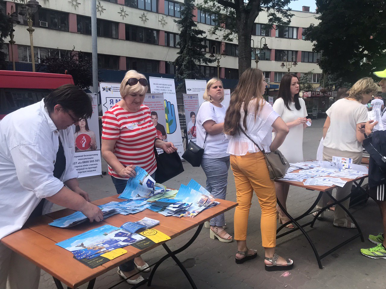 Крім того, на акції діють консультативні пункти. Кожен охочий має можливість отримати інформаційні буклети, тематичні браслети та флаєри з інформацією про торгівлю людьми та порадами, як уникнути подібних ситуацій.