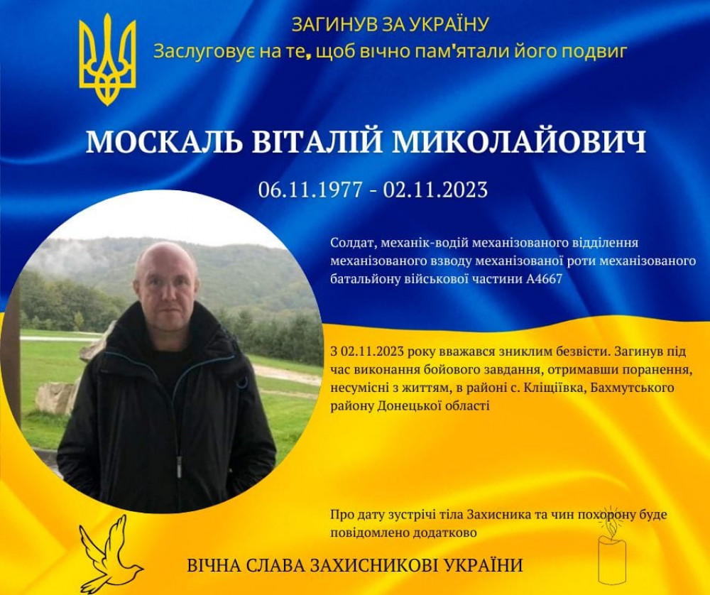 На війні загинув прикарпатець Віталій Москаль, який вважався зниклим безвісти