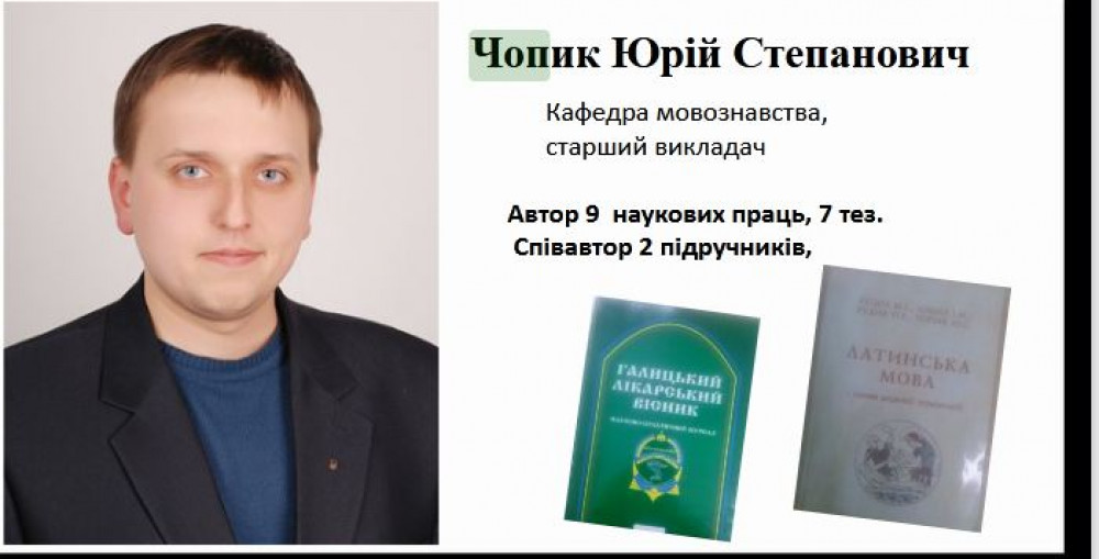 Юрій Чопик – старший викладач кафедри мовознавства Івано-Франківського медичного університету, лейтенант медичної служби, учасник АТО, пише КУРС.