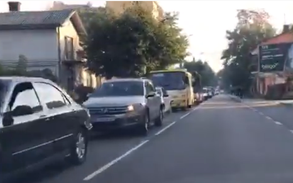 На вулиці Надрічній перекрили проїзд. Утворились величезні затори