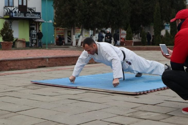 Чоловік професійно займається карате, нині живе та працює у Стокгольмі, але ставити рекорд вирішив в Україні, аби своїм прикладом надихнути молодь до фізичної активності.
