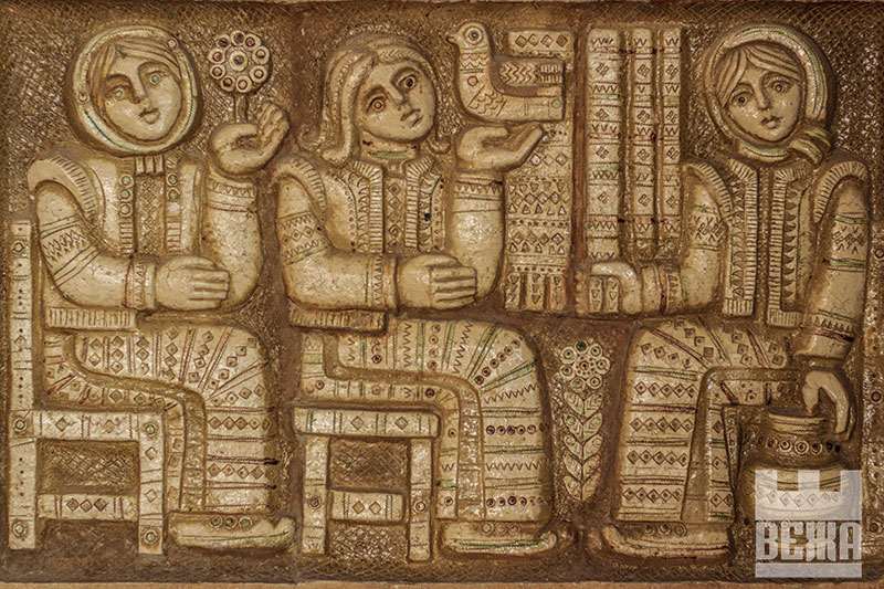 Відвідувачі теарту просто не могли не звертути увагу на велетенське панно, на якому зображені різні гуцульські мотиви, пише ВЕЖА. Якщо ж ви раптом не мали змоги роздивитись його ближче та поцікавитись історією, – пропонуємо зробити це зараз.