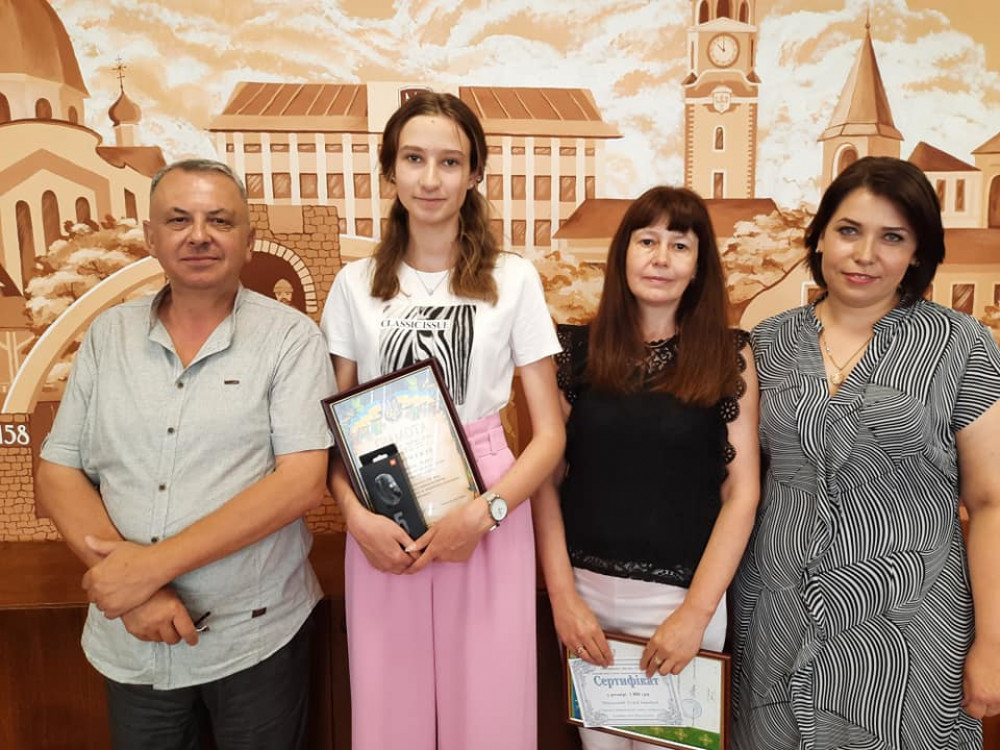 Міський голова також вручив подяку та грошову премію вчителю біології ліцею ”Інтелект” Уляні Чеховській, яка кілька років поспіль передавала свої знання та вміння обдарованій учениці, готуючи до різноманітних конкурсів та олімпіад, в яких Лариса завжди здобувала першість.