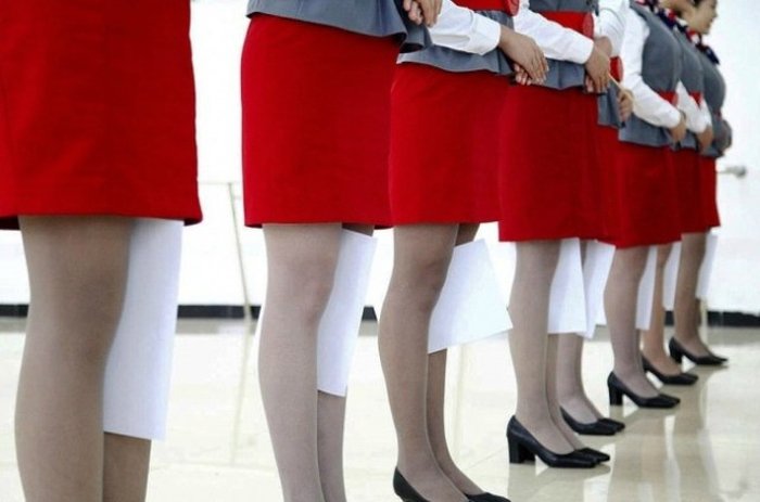 Так, щоб зробити усмішку бездоганною - в зубах вони затискають звичайні дерев'яні палички. Дівчата повинні втримати на голові журнал або пляшку з водою не менше 3 хв. - так вони тренують гарну поставу. Щоб навчитися правильно стояти - майбутні бортпровідниці затискають між колінами аркуш паперу формату А4. Загалом на заняттях сотні разів відпрацьовують кожну позу, яку їм дозволено прийняти на борту повітряного судна. Їх навіть вчать, як правильно присідати, раптом щось впало на підлогу.