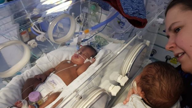 Мешканка Уельсу розповіла BBC, як один з її недоношених близнюків швидко пішов на поправку, коли до нього в інкубатор поклали його брата.