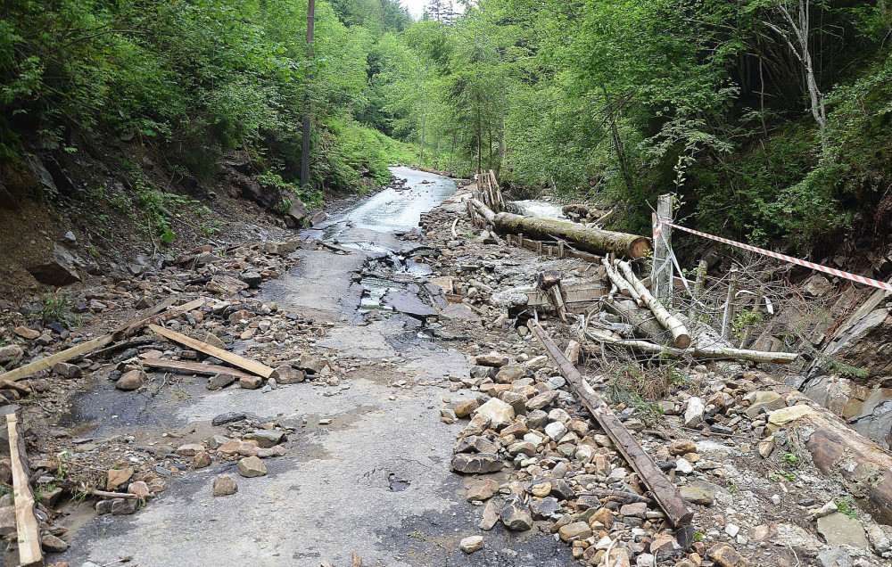 Величезна вода фактично зруйнувала дорогу до водоспаду, позбавивши туристів можливості відвідати природну перлину, а підприємців фінансових надходжень від цього. Про це в мережі повідомив сільський голова Татарова Олег Дзем'юк.