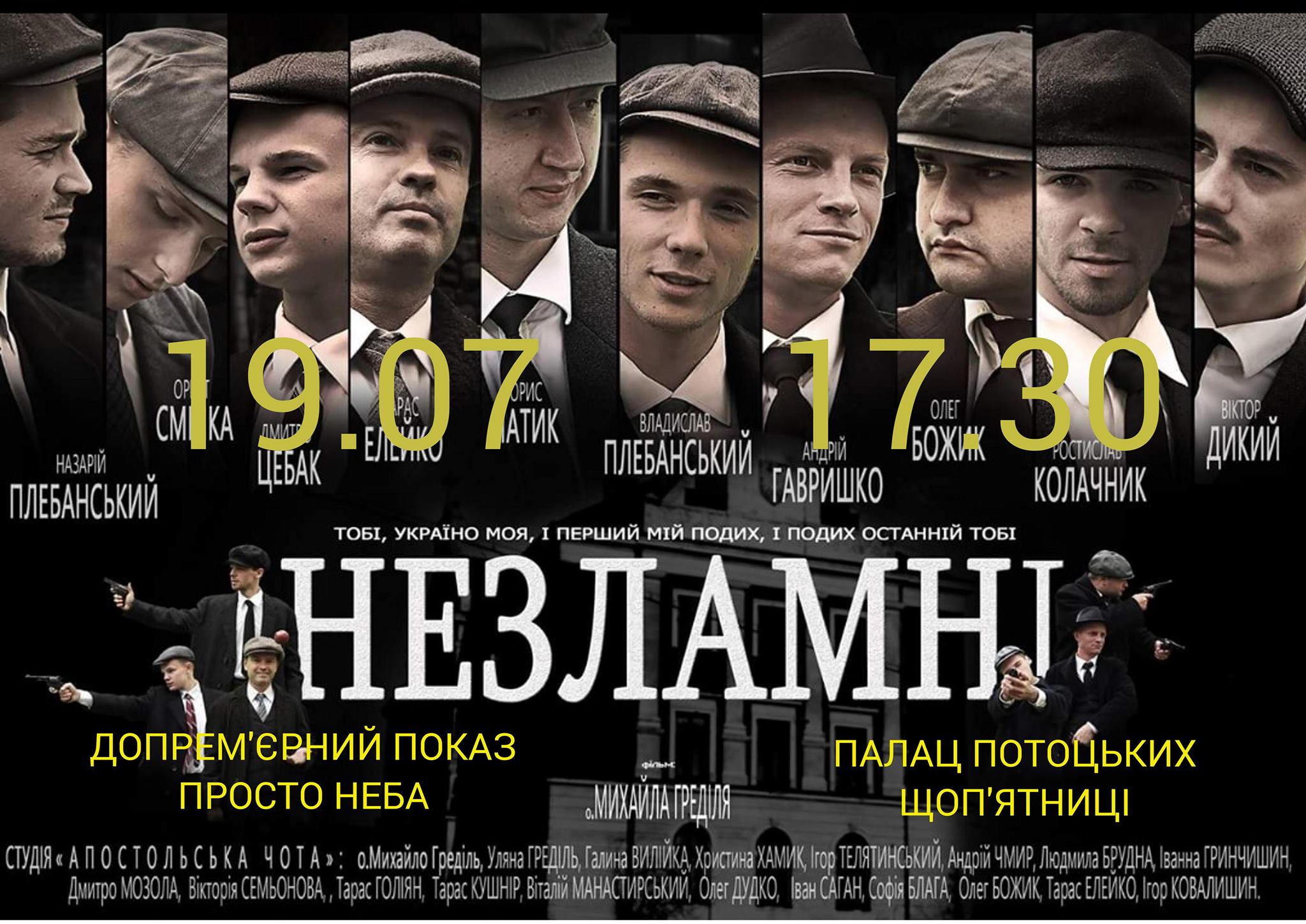 У п'ятницю, 19 липня, о 17:30 год. у палаці Потоцьких, в рамках відзначення 90-річчя ОУН, відбудеться допрем’єрний показ фільму "Незламні" - за участі режисерської та акторської групи.