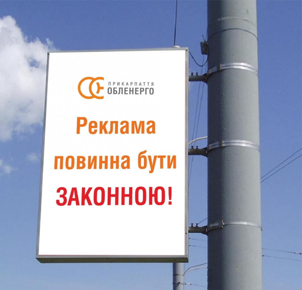 Відповідно до Закону України «Про рекламу», зовнішня реклама на територіях, будинках та спорудах розміщується за згодою їх власників або уповноважених ними органів. Тому, для того, щоб розмістити рекламу на опору, потрібно укласти договір із власником електроустановки – АТ «Прикарпаттяобленерго».