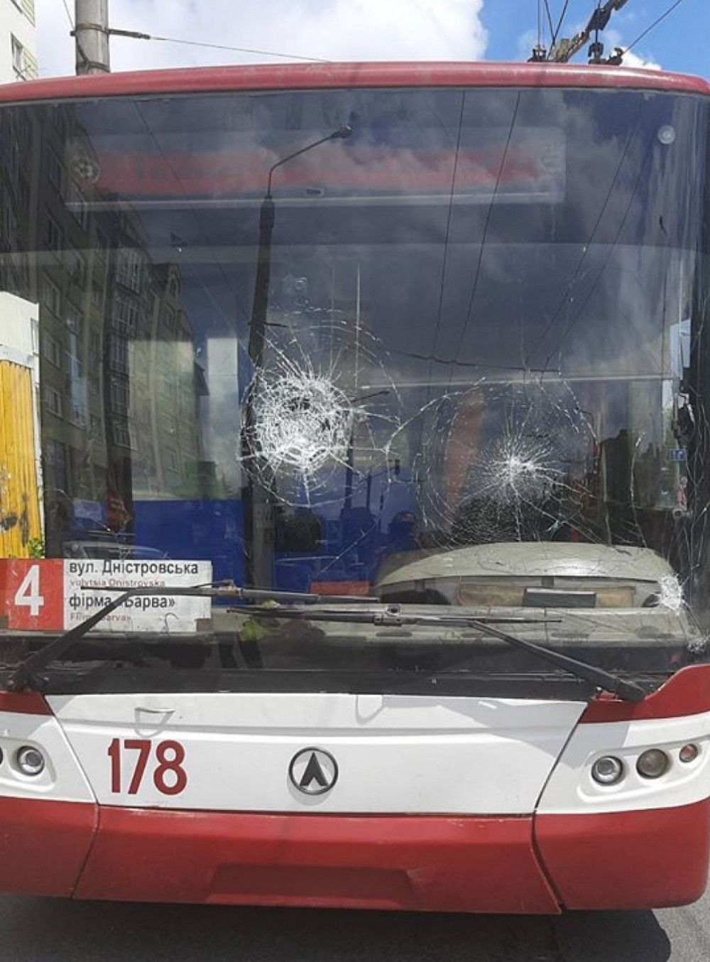 У четвер, 18 червня близько 12 години невідомий чоловік кинув камінь у вікно тролейбусу.