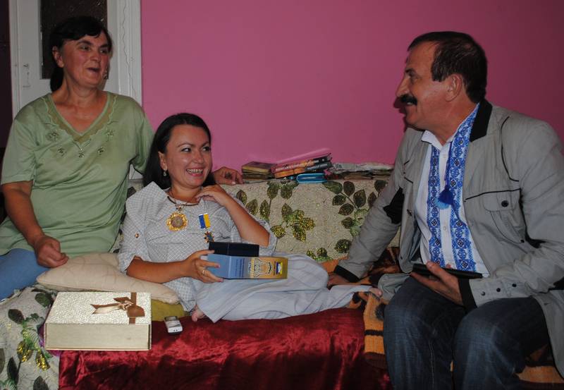 Ольга Лукань, яка може пересуватися тільки з допомогою візка, не опустила рук, а навпаки, знайшла застосування своїм здібностям на користь суспільству, справі оборони країни від ворога. Тож з ініціативи С. Гериліва бердянські волонтери подали документи для нагородження сильної духом і волею дівчини медаллю «Патріот України» — відзнаки від першого командувача Військово-морських сил України Бориса Кожина. Від імені віце-адмірала, котрий тепер перебуває за кордоном, пан Степан і вручив її в Жураках Ользі Лукань. Для самої дівчини це стало цілковитим сюрпризом. Зворушені були і її мати Євдокія та батько Микола, всі рідні, яких того серпневого дня ми застали вдома.
