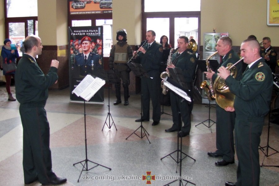 В приміщенні залізничного вокзалу міста Івано-Франківська, з метою популяризації військової служби за контрактом, військовим оркестром військової частини 1241 Західного оперативно-територіального об’єднання Національної гвардії України був організований патріотичний флешмоб для мешканців та гостей міста.
