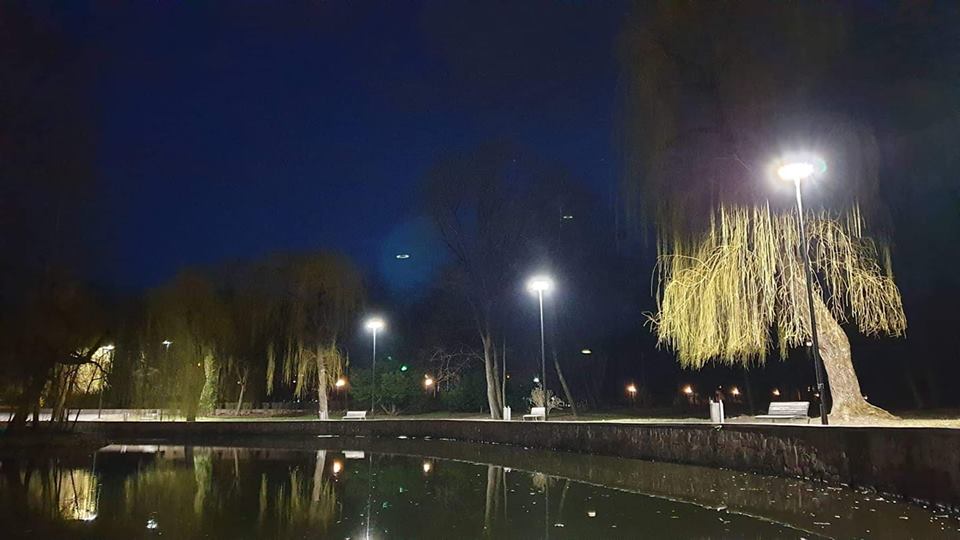 Озеро в міському парку Франківська отримало вечірнє освітлення