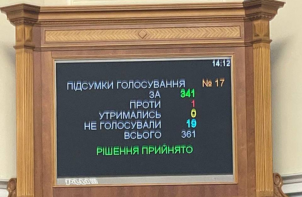 ЗА - проголосували 341 народний обранець, тобто конституційна більшість. Про це повідомив народний депутат Ярослав Железняк.