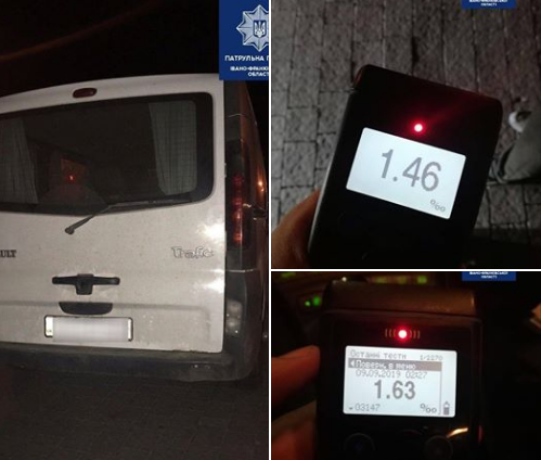 Через деякий час, на вулиці Незалежності, патрульні виявили ДТП за участі вище зазначеного автомобіля. За кермом перебував 31-річний водій, який мав ознаки алкогольного спяніння. Огляд на алкотест — 1.46 проміле.