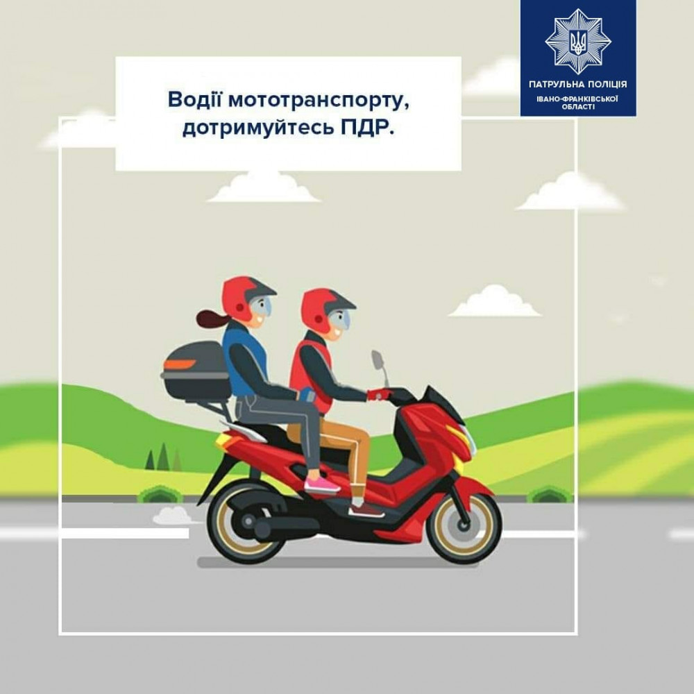Патрульна поліція Івано-Франківської області нагадує водіям мотоциклів та скутерів про власну безпеку.