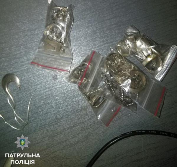 Патрульна поліція Івано-Франківська затримала підозрілого чоловіка, який мав при собі пакунки з срібними виробами.