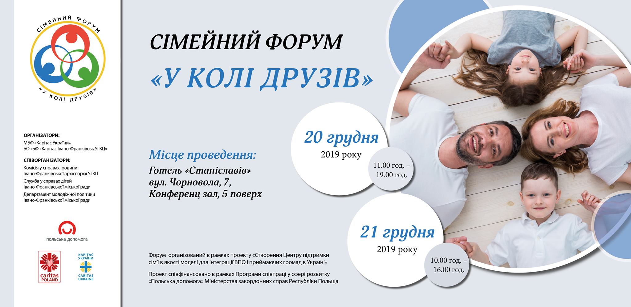 У п’ятницю, 20 грудня об 11:00 у приміщенні готелю «Станіславів» (вул. Чорновола. 7, конференц-зал, 5 поверх) розпочнеться дводенний сімейний форум «У колі друзів».