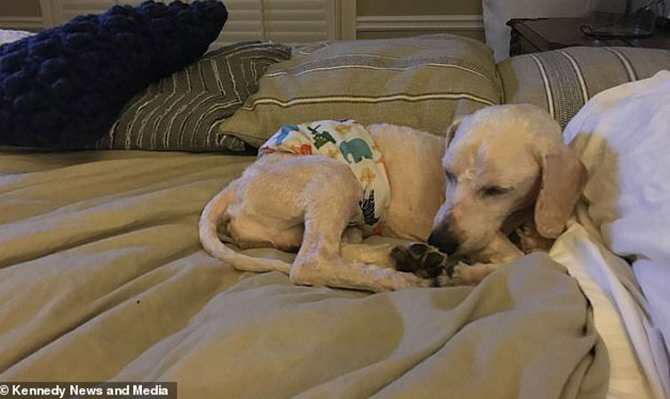 Меліса каже, пудель був дуж наляканий і не довіряв людям. Коли ввечері вона зайшла в кімнату, де був пес, перелякалася: він стояв з нахиленою головою на підігнутих лапах та хитався.
