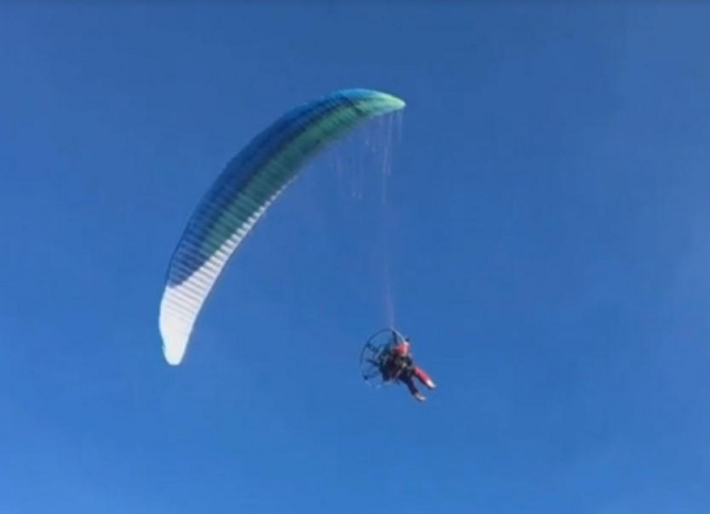 Під Києвом Санта-Клаус на мотопараплані закидав дитячий майданчик цукерками