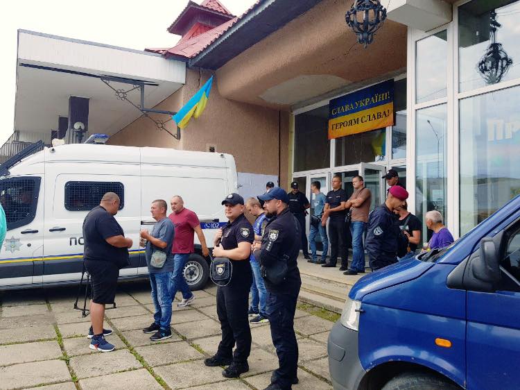 Під ОВК у Долині зібралися люди. Поліція забезпечує порядок