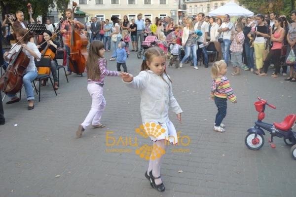 Для мешканців міста прозвучали відомі твори українських та зарубіжних композиторів: «Мелодія» Скорика, увертюра до опери «Тарас Бульба» Лисенка і «Севільський цирульник» Россіні, сюїта «Лебедине Озеро» Чайковського та «Кармен» Бізе «Українська карпатська рапсодія» Колодуба, угорський танець No5 Брамса, вальс «Маскарад» Хачатуряна.