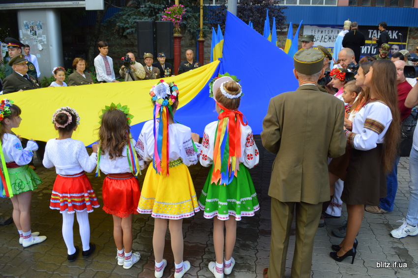 На площі зібрались сотня франківців та гостей міста, військовослужбовців, учасників АТО, воїнів УПА, духовенства, представників міської та обласної влади, інформує кореспондент Бліц-Інфо.