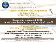 В Головному управлінні ДФС в Івано-Франківській області нагадують, що відповідно до Закону України від 08 липня 2010 року №2464-VI «Про збір та облік єдиного внеску на загальнообов’язкове державне соціальне страхування» єдиний внесок підлягає сплаті незалежно від фінансового стану платника.