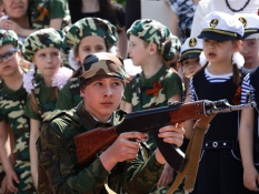 "Парад дитячих військ", присвячений 70-річчю Великої Перемоги, зібрав у четвер у Ростові-на-Дону понад 500 вихованців дитячих садків, одягнених у військову форму різних видів і родів військ... десантників, розвідників, підводників, моряків та інших видів Збройних сил Росії, а окрасою параду стала колона триколісних велосипедів. Командувач парадом, об'їжджаючи взводні коробки, вітав дітей з кабріолета командувача Південного військового округу (ПВО) як на "дорослому" параді, відкривала ходу з прапором РФ група військовослужбовців роти почесної варти під марш військового оркестру штабу військового округу. Вітальне послання учасникам параду надіслав командувач військами ПВО Олександр Галкін: "Вірю, що ви станете гідними продовжувачами традицій ваших прадідів, батьків і дідів і будете свято шанувати пам'ять про Велику Перемогу".