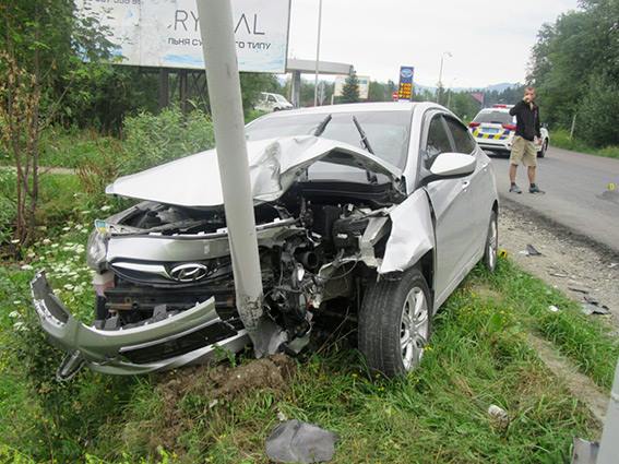 Як встановили працівники поліції, прибувши на місце ДТП, 48-річний мешканець Івано-Франківська, керуючи автомобілем «ЗАЗ Таврія» на відрізку автодороги сполученням «Мукачево - Львів» не впорався із керуванням, виїхав на зустрічну смугу, де допустив зіткнення із автомобілем марки «Хюндай Акцент» під керуванням 41-річного киянина. Після зіткнення "Хюндай" відкинуло на обочину, де авто в'їхало в металевий стовп.