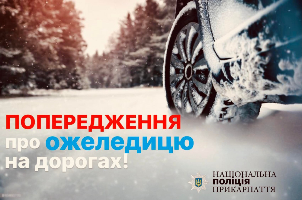 Поліція Івано-Франківщини попереджає про погіршення погодих умов, на автошляхах області - ожеледиця.