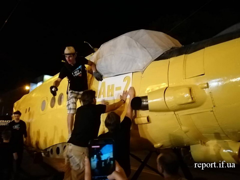 Не встигло місто оговтатись від появи одного літального апарату – гелікоптера МІ-8 біля драмтеатру, як рівно через тиждень до Франківська привезли ще один літак.