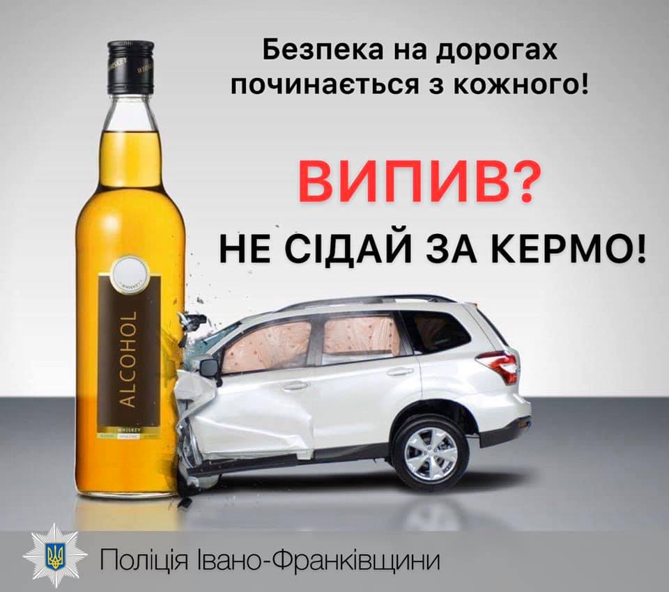 Правоохоронці Івано-Франківщини нагадують водіям про заборону сідати за кермо у стані сп’яніння та не нехтувати правилами дорожнього руху!