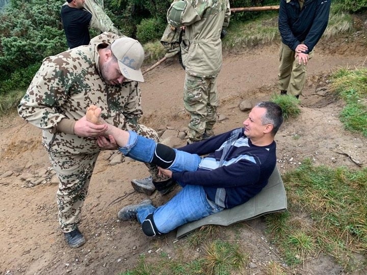Стало зрозуміло, що потерпілого потрібно терміново транспортувати до підніжжя гори. Після чого, учасники походу змайстрували саморобні ноші, використовуючи речі, які були наявні: ремені та дерев’яні палки. Саме на них правоохоронці знесли чоловіка з крутого схилу гори.