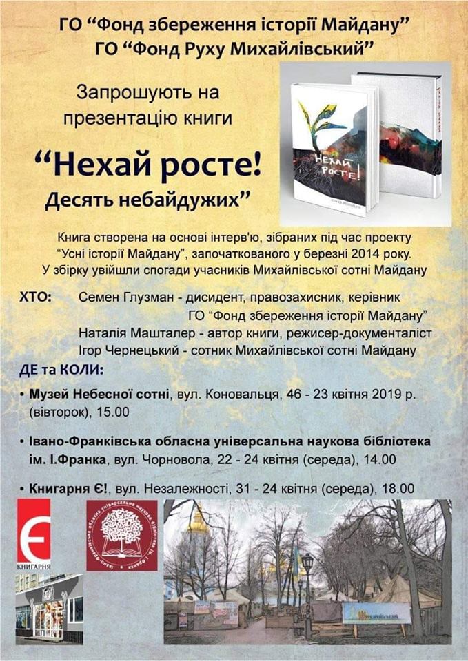 24 квітня 2019 року - івано-франківська обласна наукова універсальна бібліотека ім І. Франка - 14:00;