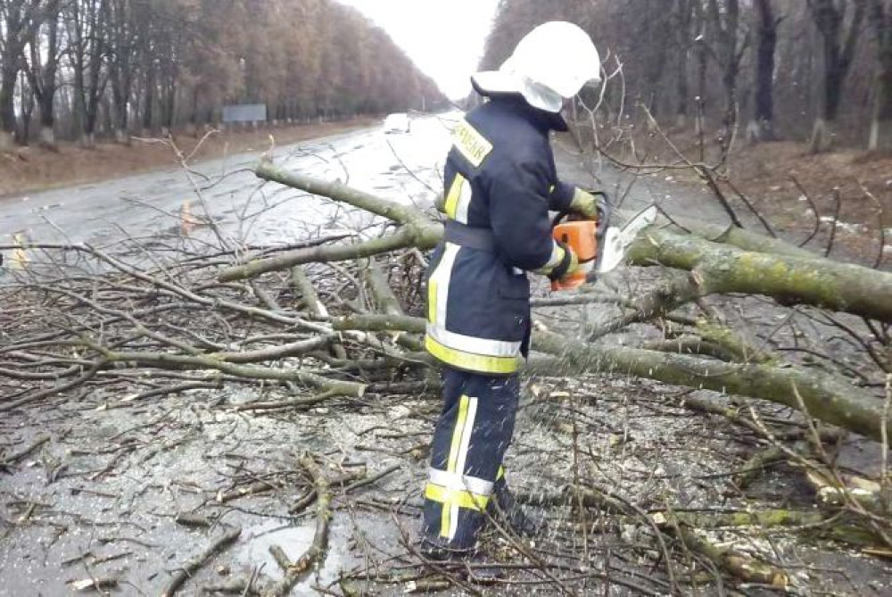 Прикарпатські рятувальники розрізали повалені дерева, які заблокували рух