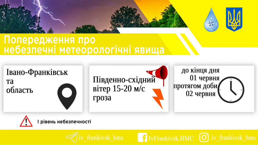Штормове метеопопередження від управління з питань цивільного захисту Івано-Франківської ОДА.
