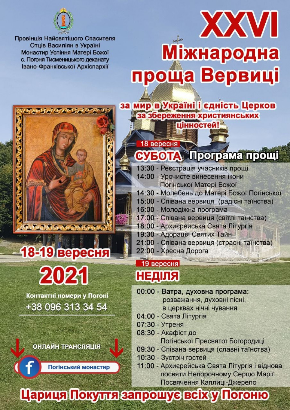 Пропонуємо Вашій увазі повну програми цьогорічної Міжнародної прощі Вервиці до Погоні.