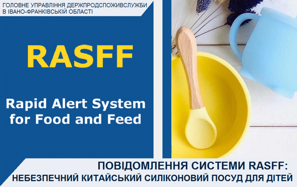 Головне управління Держпродспоживслужби в Івано-Франківській області інформує про отримання інформаційного повідомлення через систему швидкого оповіщення по харчових продуктах та кормах (RASFF) стосовно виявлення міграції легких органічних компонентів (1,6%) з силіконового посуду для дітей, що експортувався з Китаю через Данію до України.