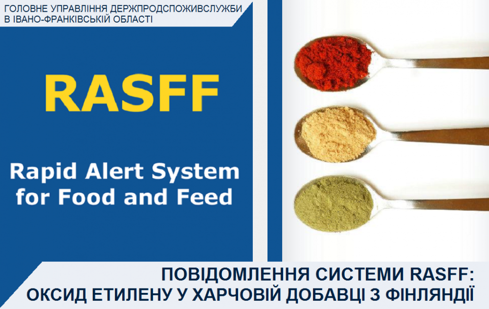 Прикарпатців попереджають про виявлення несанкціонованої речовини оксиду етилену (сума 2 – СЕ та ЕО, виражена як ЕО: 11,8 мг/кг – промеле) у харчовій добавці, що експортувалась з Фінляндії (виробник: Hankintatukku Arno Latvus OY, Helsinki) до України.