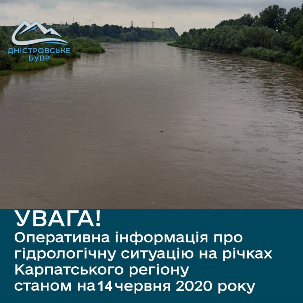 14 червня на р. Днiстер біля м. Залiщики (Тернопiльська обл.) очiкується проходження максимального рiвня води дощового паводку висотою 400 - 440 см над нулем поста (рiвень води станом на 8 годину 13 червня становив 353 см), максимальною витратою води в межах 600-750 м3/с.