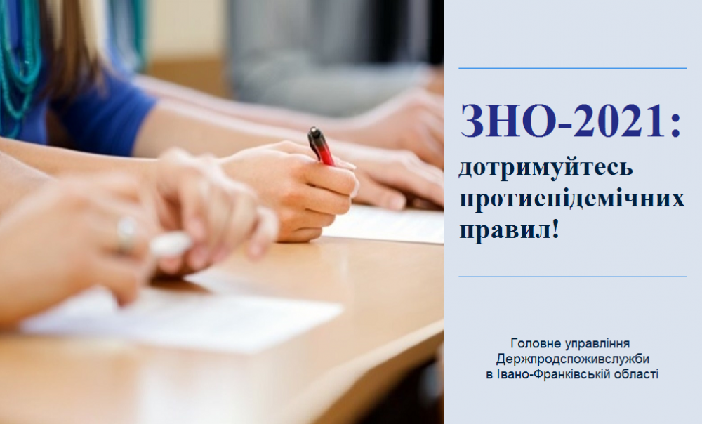 Закликаємо організаторів ЗНО забезпечити суворе дотримання протиепідемічних заходів в пунктах проведення тестування. Просимо громадськість, батьків та учасників ЗНО інформувати Головне управління Держпродспоживслужби в Івано-Франківській області про порушення протиепідемічних вимог через гарячу лінію – тел. 0342-511389.