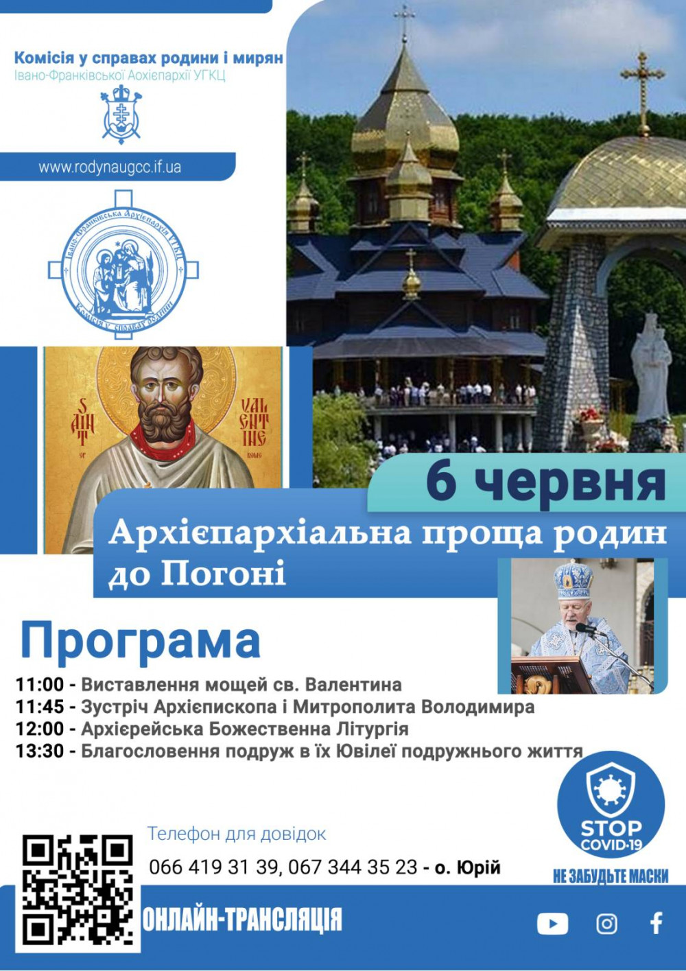 «Віримо, що Бог зволить і цього року ми проведемо Прощу родин. Вона буде відбуватися 6 червня у Погоні – нашому давньому і славному відпустовому центрі, місці об’яви Пресвятої Богородиці у Чудотворній іконі. На Фейсбук-сторінці Погонського монастиря буде відбуватися онлайн-трансляція прощі. Тож всі, хто буде залишатися дома, бо хворіє, чи боїться захворіти, зможуть долучитися онлайн. Хто захоче приїхати, закликаємо дотримуватися всіх вимог безпеки. Проща буде відбуватися просто неба, але ми просимо всіх бути максимально обережними і ставитися з повагою один до одного, виконувати всі карантинні норми: маски, дистанція», – закликає о.Юрій.