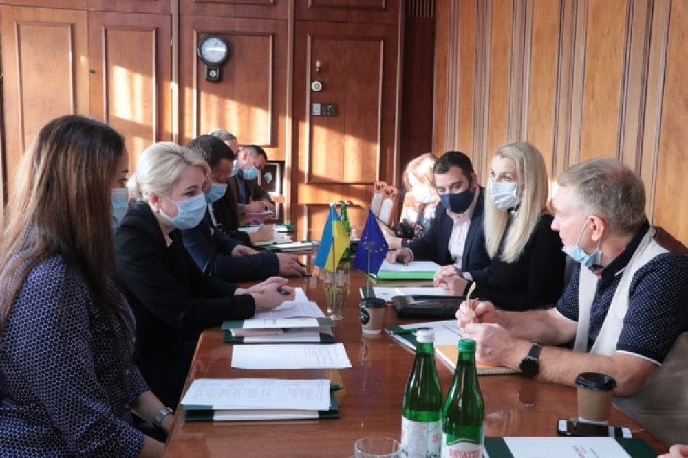 Сьогодні голова облдержадміністрації Світлана Онищук провела зустріч із експертами проєкту міжнародної технічної допомоги Європейського Союзу «Посилення спроможності регіональних та місцевих органів влади для впровадження та застосування законодавства ЄС у сферах захисту навколишнього середовища, протидії кліматичним змінам та розвитку інфраструктурних проєктів».