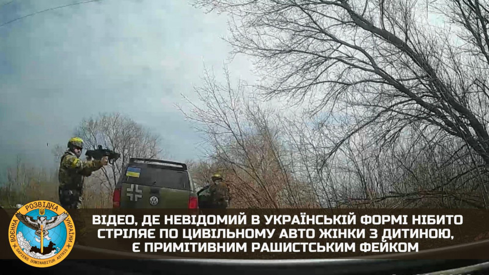 Українська розвідка наголошує, що відео із соцмереж, де невідомий в українській військовій формі начебто стріляє по цивільному авто жінки з малою дитиною, є російським фейком та ворожою інформаційно-психологічною операцією.