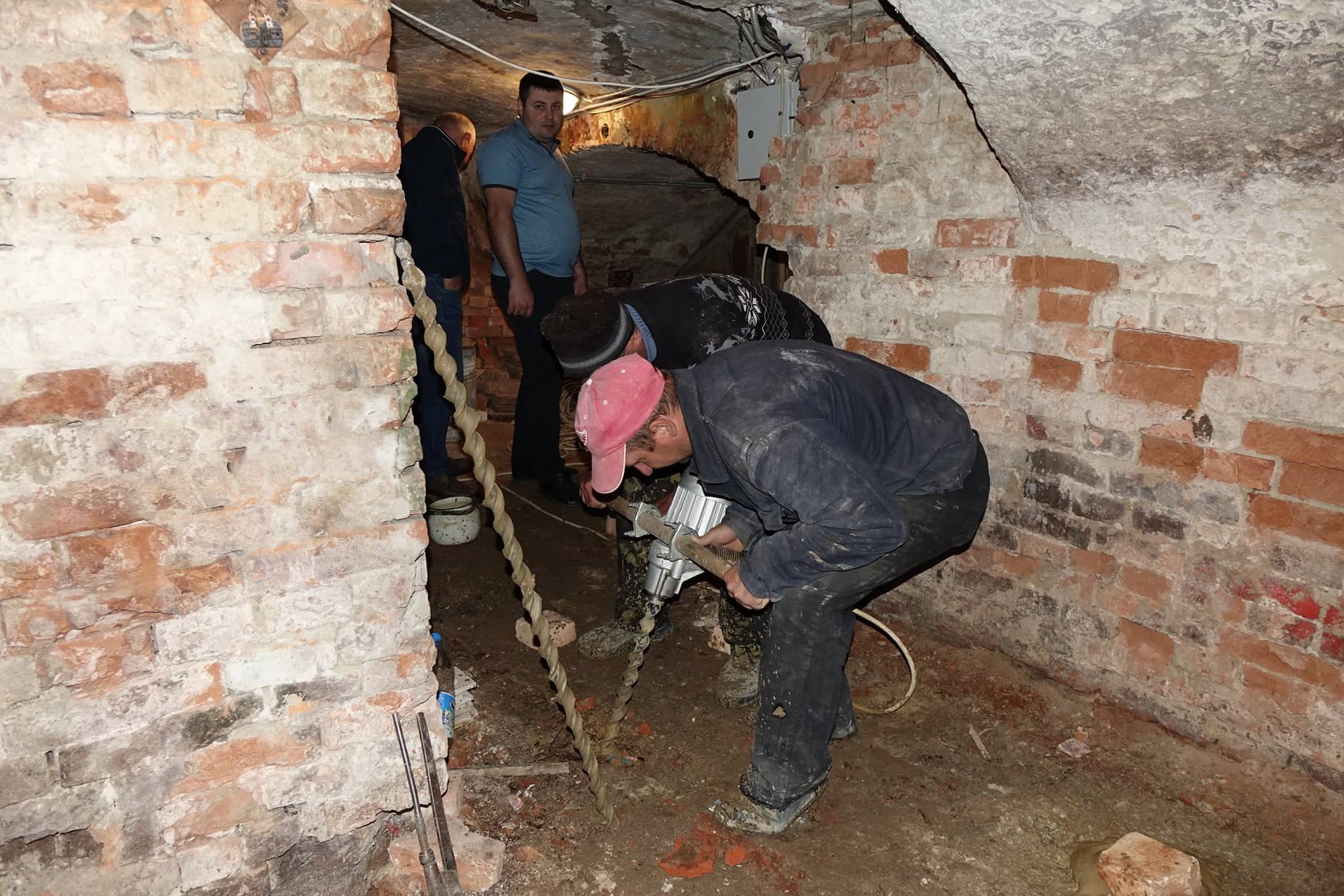 Бригадир будівельної бригади, яка виконує ці роботи Олександр Власовзазначає, що працівники просвердлили понад 880 свердловин глибиною від 6 до 3 метрів, які заповнюються цементом марки «500» та рідким склом під тиском до 8 атмосфер.