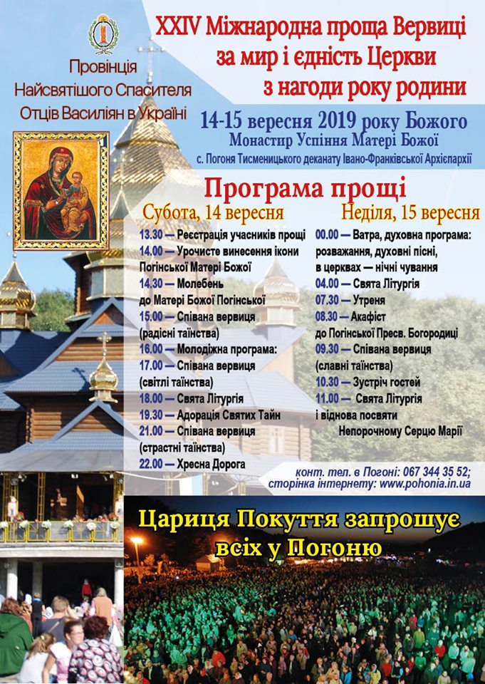 14-15 вересня в Монастирі Успіння Матері Божої с. Погоня відбудеться XXIV Міжнародна проща Вервиці.