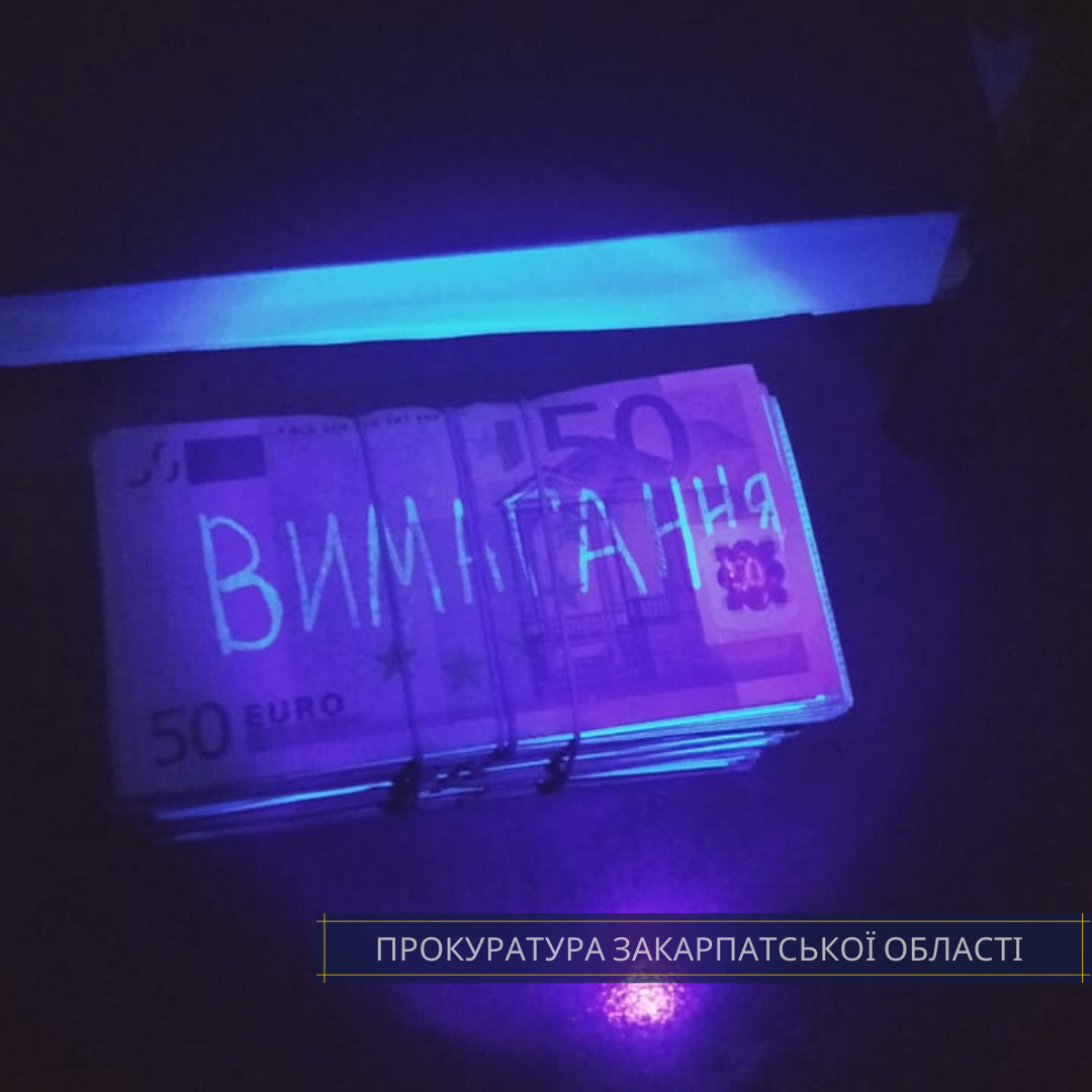 Прокурорами прокуратури Закарпатської області спільно із оперативниками управління стратегічних розслідувань в Закарпатській області та детективами ГУНП в Закарпатській області задокументовано факт вимагання і отримання зловмисниками готівки.