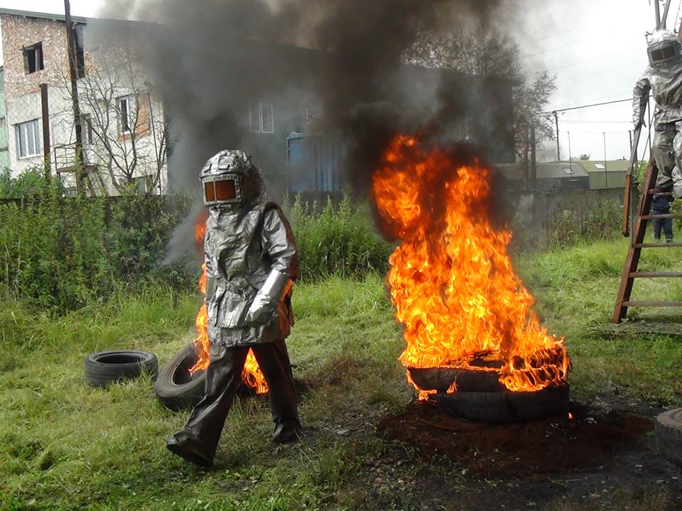 Практичні заняття рятувальників складалися із подолання ними вогняного бар’єру та палаючого містка, після чого вогнеборці піднімалися по драбині на умовну технологічну установку, охоплену клубами диму. Для виконання цих тренувальних вправ рятувальники одягали спеціальний одяг із спорядженням та тепловідбивні костюми, які здатні витримати високу температуру.