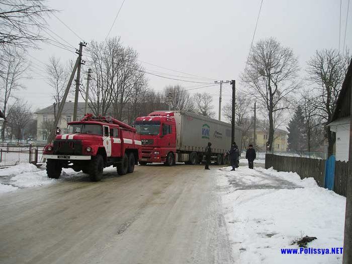 Автомобль «Renault», рухаючись по вул.Симоненка, внаслідок ожеледиці з’їхав з дороги . Рятувальники, які прибули до місця виклику, за допомогою пожежного автомобіля та буксирувального тросу витягли вантажівку на проїжджу частину дороги.