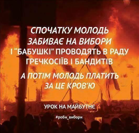 "Добросовісні пенсіонери обирають нам тих людей, які вже вижили себе і яких пора замінити. Натомість вони дають гречку і по 100 грн. за голос. Вони не розуміють, що завтра заберуть більше, вони живуть сьогоднішнім днем та картинками з ТВ. Своєю байдужістю не нарікайте на владу, нарікайте на себе. Який народ така і влада. Сидимо до наступного майдану, потім підемо проливати кров", - підсумовує Віталій Світлик.